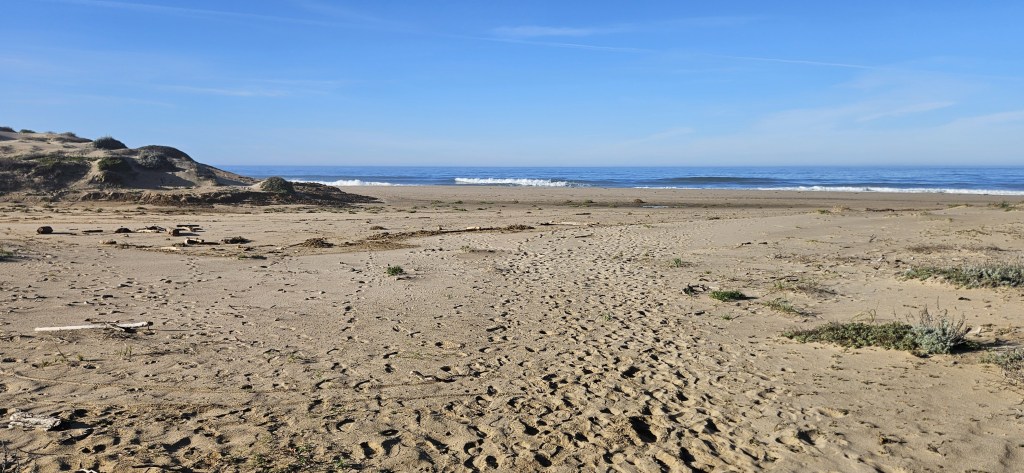 A small group of trackers gathered at Gazos Creek State Beach, greeted by clear skies and a promising start to the day. A few Acorn members scouted the beach at both ends, and after a brief discussion, decided the southern end held more potential for tracking. A couple of the group members kindly offered a ride, and we carpooled to the site.